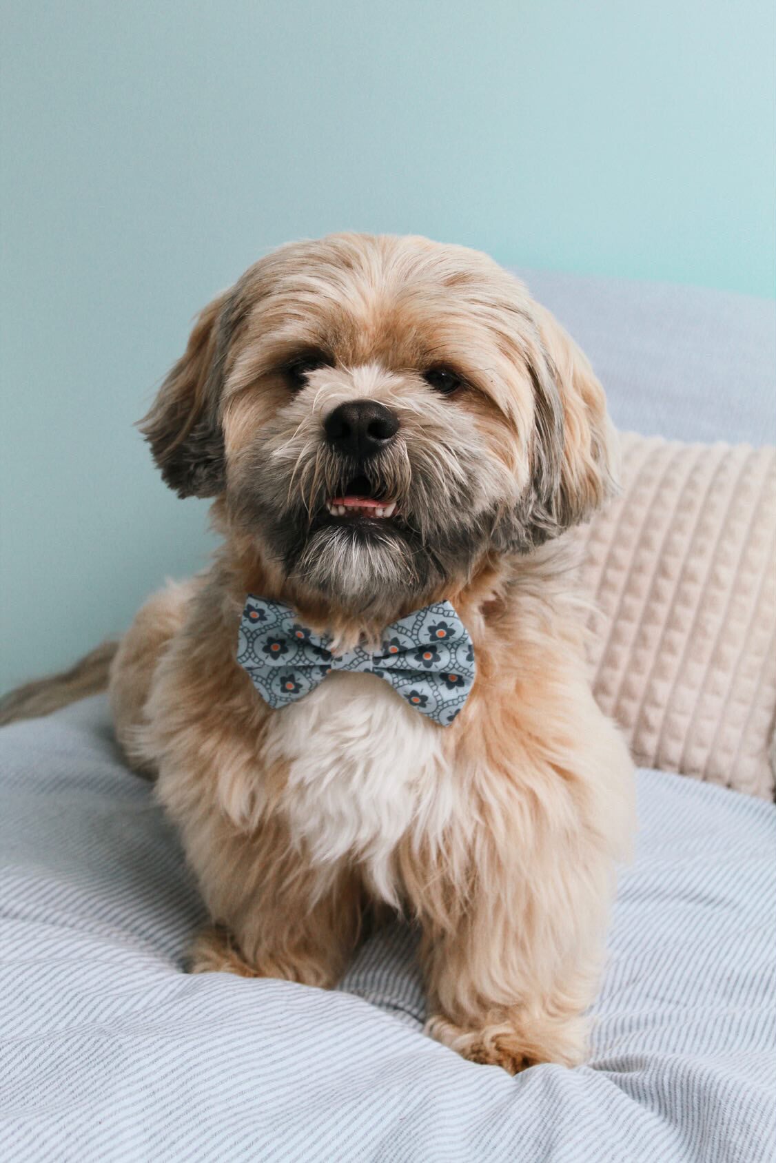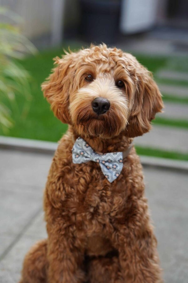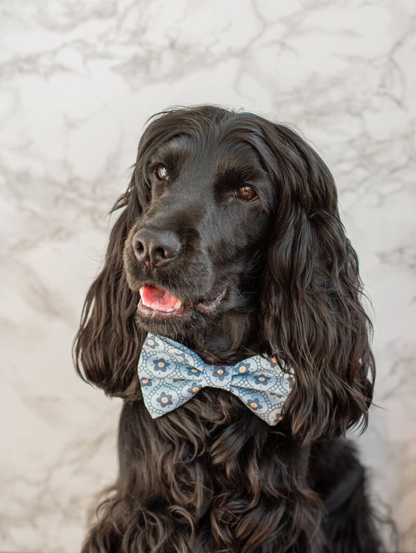These cute bows will make your dogs look even more cheerful! They are handmade with 100% cotton and come in many fun and colorful designs. You can slide the bows onto your collar with the elastic bands on the backside of the bow.