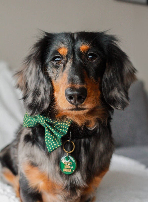 Ho Ho Bow! These cute bows will make your dogs look even more jolly! They are handmade with 100% cotton and come in many fun and colorful designs. You can slide the bows onto your collar with the elastic bands on the backside of the bow.