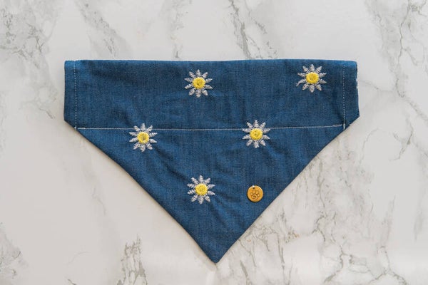 A new season calls for a fresh look. The Indigo Bloom bandana blends deep blue tones with an embroided floral touch, perfect for stylish pups who love a hint of elegance! This bandana is part of our new Denim Collection.