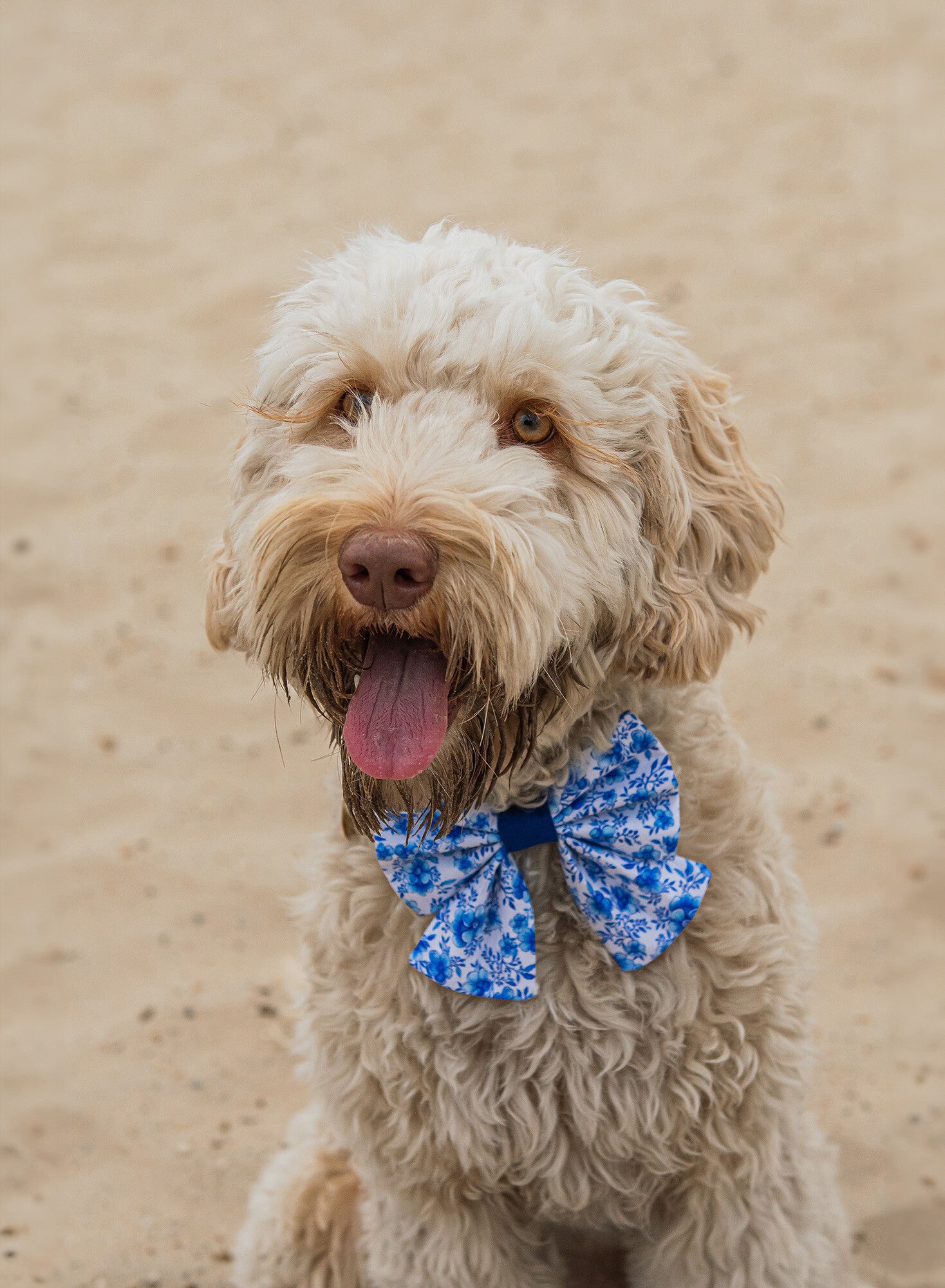 These cute sailor bow ties will make your dogs look even more cheerful! They are handmade with 100% cotton and come in many fun and colorful designs. You can slide the bows onto your collar with the elastic bands on the backside of the bow.