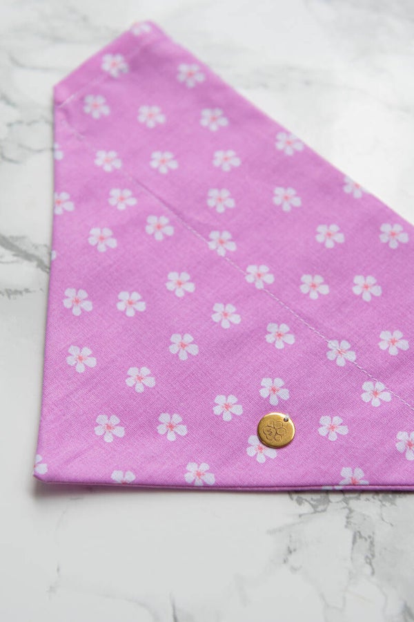 The bandanas are 100% cotton and are available in three sizes: XS, S and M. The badanas slide over your dog’s collar for an easy fit.