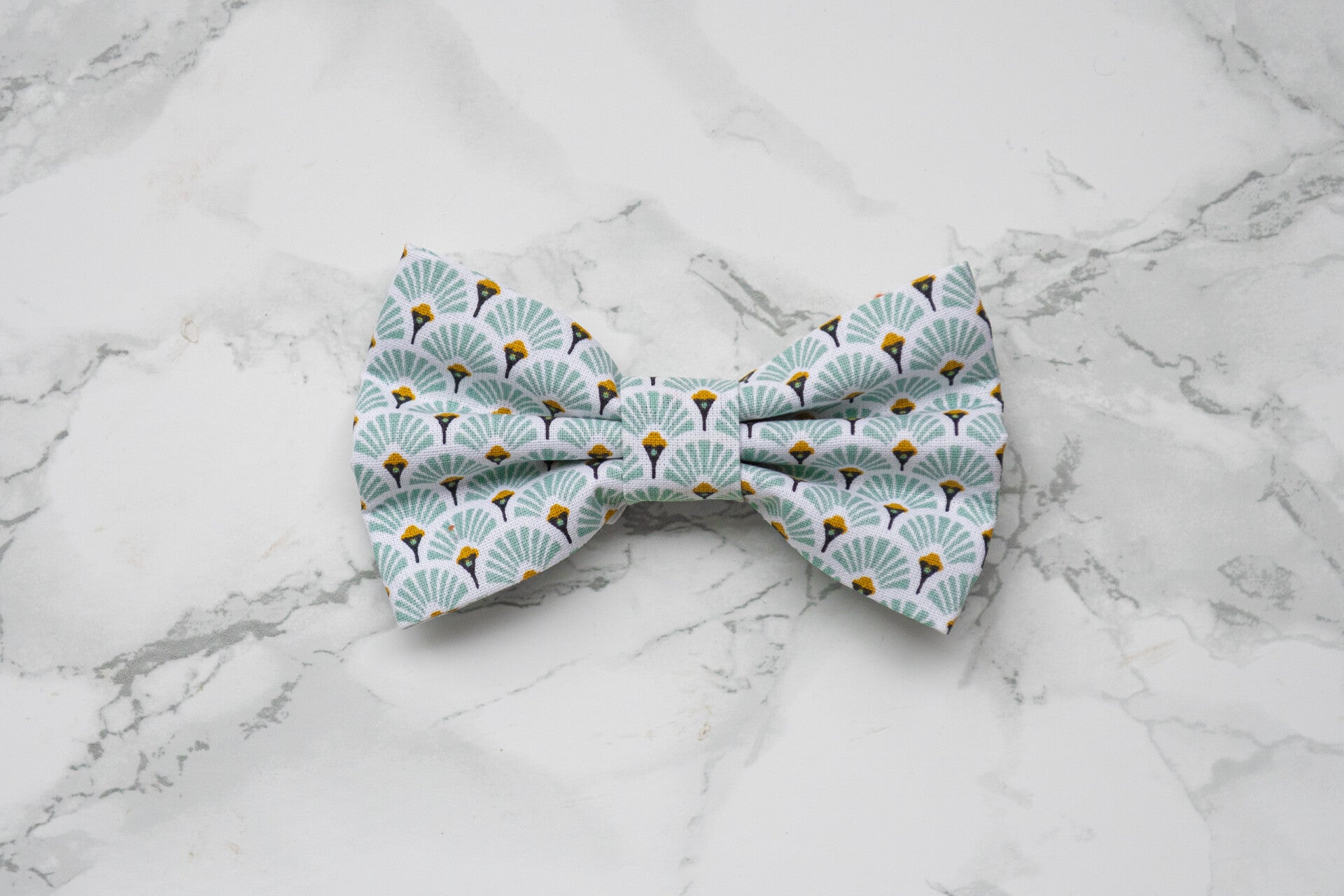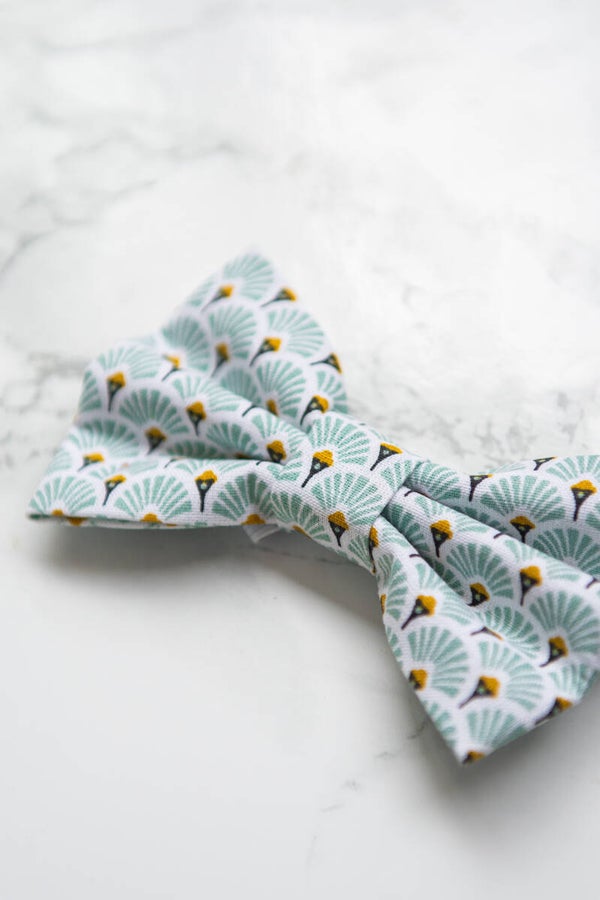 These cute bows will make your dogs look even more cheerful! They are handmade with 100% cotton and come in many fun and colorful designs. You can slide the bows onto your collar with the elastic bands on the backside of the bow.