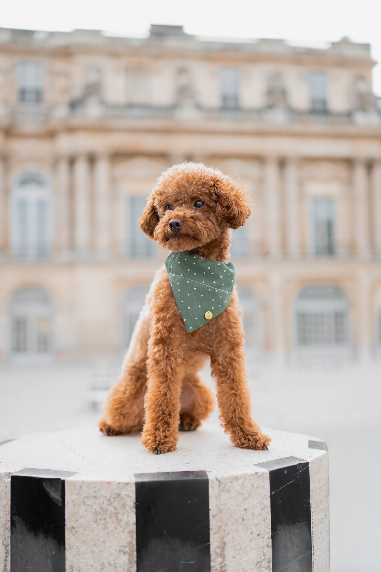 Featuring a playful green-and-white polka dot print, this bandana is the perfect match for crisp walks, leafy adventures, and cozy cuddle sessions. It’s cheerful, stylish, and just as fun as your pup.