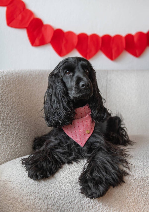 Add a Valentine-inspired accent to your dog’s outfit with the Darling Pink bandana. Designed in a gentle pink shade and red hards. This bandana brings a light, romantic feel that works just as well for everyday walks as for special Valentine moments.