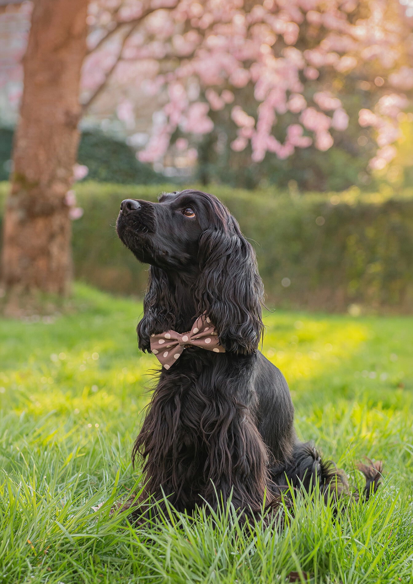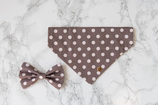 The adorable Bow - Polka Dot Brown brings a warm and playful vibe to your dog’s everyday look! This bow features our own original pattern design and is handmade from 100% cotton. They are soft, durable, and full of character. Simply slide the bow onto your dog’s collar using the elastic bands for an easy and secure fit.