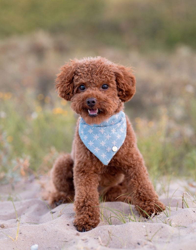 Hoi, ik ben Miel een Australian Labradoodle geboren op 27 Januari 2024. Ik ben te herkennen aan mijn witte snoet en mijn vrolijke blik. Ik hou er van om de sokken van mijn baasjes te stelen, te poseren voor de vele foto’s en vooral van op mijn vaste plekje op de sofa eindeloos lang naar buiten te staren. Samen met mijn baasjes trek ik graag de natuur in en ontdekken we de mooiste plekjes! Ik ben echt fan van Jip’s boutique omdat alles handgemaakt is en er steeds nieuwe producten verschijnen. Ik ben eigenlijk een bangerd maar voel me net een tikkeltje stoerder wanneer ik een strikje of bandana mag dragen!